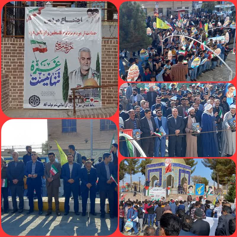 امروز شنبه همراه با سایر شهرستان های استان و کشور مردم و مسئولین شهرستان زاوه در حمایت از مردم مظلوم فلسطین و غزه شعار مرگ بر اسرائیل و آمریکا، و حمایت های خود را از مردم مظلوم فلسطین اعلام کردند .